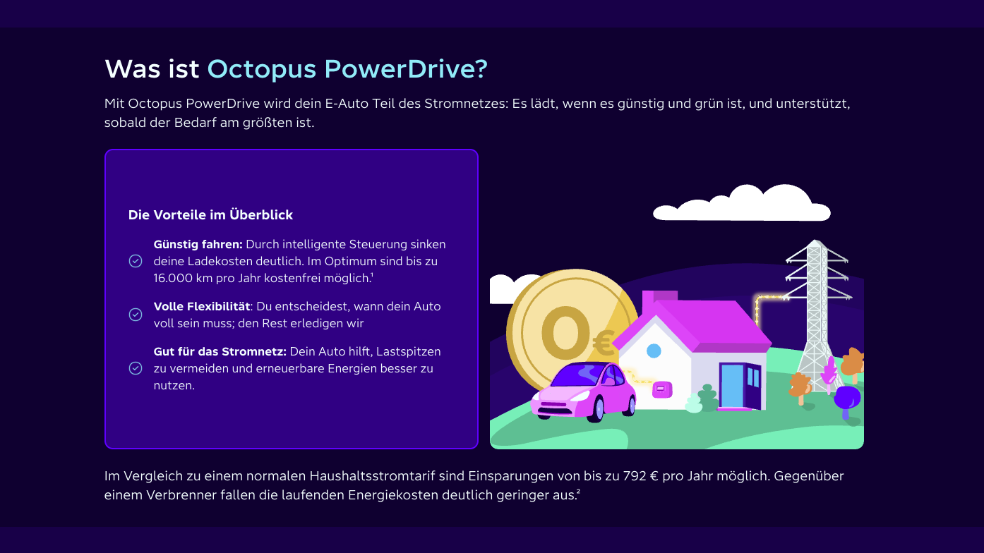 Octopus Energy schreibt Kunden einen monatlichen Bonus von 30 Euro gut, wenn das Elektrofahrzeug mindestens 300 Stunden pro Monat mit der Wallbox verbunden ist. Dadurch kann von einem jährlichen Bonus von bis zu 360 Euro profitiert werden. Zusätzlich erhalten Kunden einen reduzierten Ladepreis mit einer Vergünstigung von 18 Cent/kWh, woraus sich ein effektiver Ladepreis von durchschnittlich 15 Cent/kWh ergibt. Laut Ford lassen sich durch den reduzierten Ladepreis und der 360 Euro Bonus-Gutschrift rechnerisch bis zu 16.000 Kilometer/Jahr kostenfrei laden – bei einem angenommenen Verbrauch von 15 kWh/100 km.