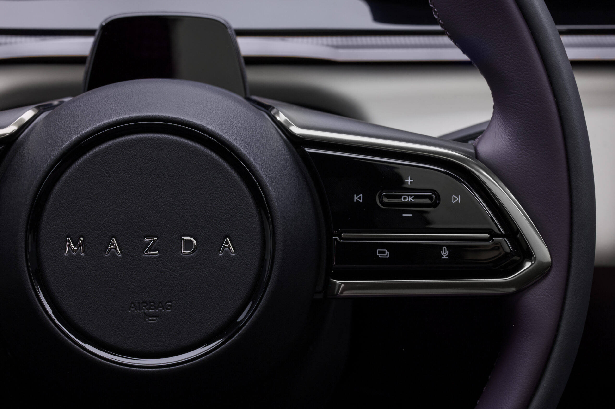 Der neue Mazda CX-6e ist in den Ausstattungen „Takumi“ sowie „Takumi Plus“ erhältlich und bereits in der Basisausstattung hat das elektrische SUV Ausstattungs-Highlights wie dem breiten Multimedia-Touchdisplay mit Sprachsteuerung, Head-up-Display, elektrisch einstell- und beheizbare Sitze (vorne), beheiztes Lenkrad, Ambiente-Beleuchtung mit 256 Farben, elektrische Heckklappe, 360°-Monitor mit See-Through-View oder einem getönten Panorama-Glasdach. Die serienmäßigen 19-Zoll-Aero-Felgen können optional durch 21-Zoll-Alufelgen im Diamantschliffdesign getauscht werden und die höhere Austattung „Takumi Plus“ ergänzt die Basis um beheizte Sitze hinten (außen), kamerabasierte Spiegel und Design-Elemente im Innenraum.